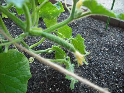 仲よし農園では,もう小さなキュウリやナスビができています。たくさん獲れますように!