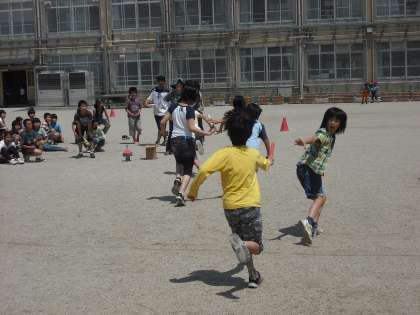 運動委員会主催の全員リレー3日目,今日は5年生です。5年生にもなると,バトンゾーンをうまく使って,バトンの受け渡しをしています。クラス対抗なので応援にも力がはいります。