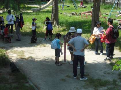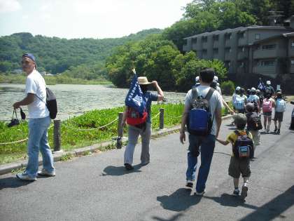 途中,深泥池公園で休憩し,再び宝ケ池に向けて出発です。