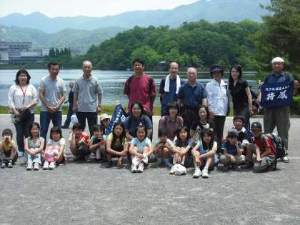 宝ケ池到着。全員で記念写真です。