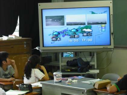 雲の量や雲の動きから,天気が変わるかどうか調べます。気象情報をインターネットを活用して学習に組み込んでいます。