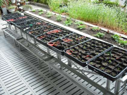 一人住まいのお年寄りの皆さんにプレゼントするペチュニアの苗を黒ポットに植えかえました。順調に育ちますように。