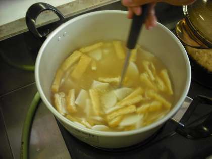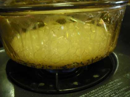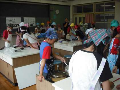 ご飯は耐熱ガラスのお鍋で炊くので,中の様子がよくわかります。みそ汁も美味しそうに出来上がりました。給食と一緒にいただきます。