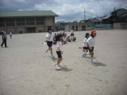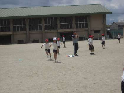 今日はリレーでバトンタッチの練習です。うまくバトンが渡るようにグループのみんなで工夫をして練習しました。北京オリンピックの男子400mリレーで銅メダルをとったようにうまくできるかな?