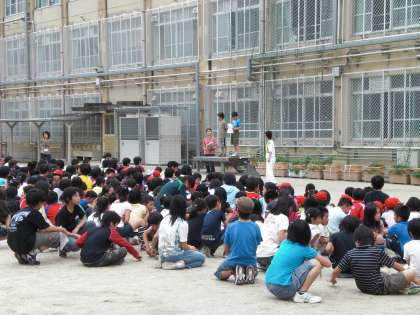 今日の3・4校時に,児童会主催の「校内オリエンテーリング」がありました。心配されていたお天気も順調に回復し,最後のほうは暑いぐらいでした。開会式の後,たてわり班ごとにゲームコーナーに向かいました。