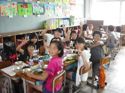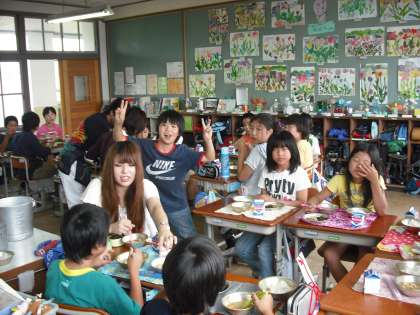 今日は5時間目もあるので,学生の皆さんはお弁当持参です。給食時間に一緒に楽しく食事をしています。さすがにこの時間は日本語禁止ではありません。教室に笑顔と笑い声でいっぱいです。