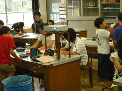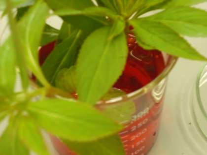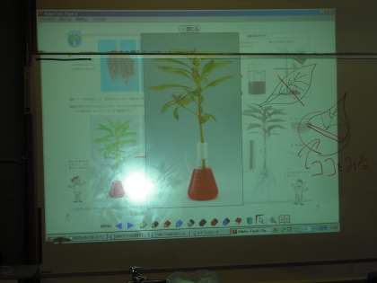 ホウセンカが根から吸った水は,茎を通して葉まで上がっていくことを調べたり,ホウセンカの茎や葉の付け根などを切って,赤くなっているところを調べたりしています。
