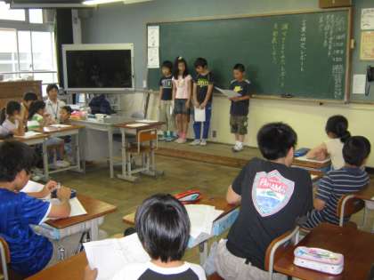 5年生は,1組・2組が国語,3組が保健です。国語では,調べたことをまとめて,一人ずつ発表しました。保健では,受け継がれる命について学習しました。