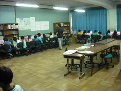 3年生では簡単な単語について,ローマ字で表記されたものを読んだり,ローマ字で書いたりする学習をしています。そこで,これから使う機会の多くなるコンピュータの文字入力の練習も含めて,ローマ字学習を進めています。
