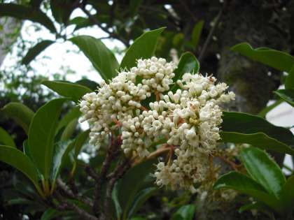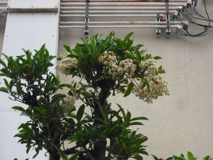 今年も珊瑚樹に花が咲きました。実の色の変化が楽しみですね。