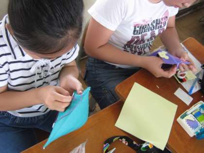 フェルトを使って,ティッシュケースやペンケースなどを作っています。自分だけのオリジナル作品を作り,使うのが楽しみです。