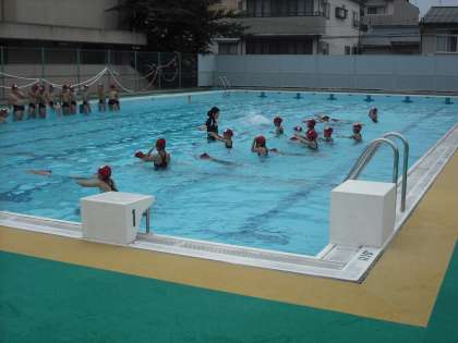 先週は水慣れでしたが,今週からは水泳学習です。水位も上がっています。今日はふしうきやけのびの練習をしています。