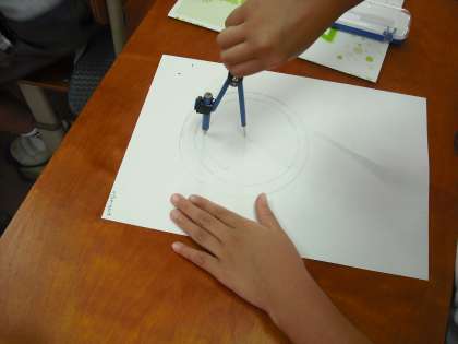 今日は初めてコンパスを使っています。円を描く時,なかなか中心が定まらないでズレてしまいます。練習をすることによって上手にかけるようになります。算数の時間以外にもいっぱい練習しましょう。