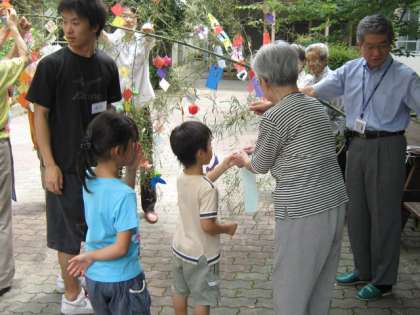1年 すこやか学級との交流「七夕かざり」