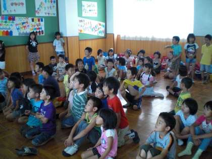 今日のポンポンデーは,七夕のお話です。しかも色つきの影絵があったり横にきれいな背景があったりで,図書ボランティアのみなさんが,努力してくださったことがよくわかりました。ありがとうございました。子どもたちも静かに聞き入っていました。