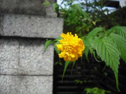 ちょっと季節外れの山吹が一輪咲いています。7月に咲くとは,本当に珍しいですね。