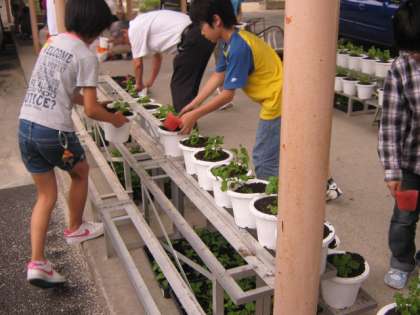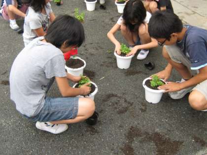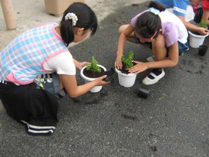 6年生は,毎年,社会福祉協議会の皆さんと共に,地域の一人暮らしのお年寄りの方へ花をプレゼントしています。今年はペチュニアを育てました。大きく育った苗を,ポットから鉢へと植え替えました。苗を折らないように,やさしく植え替えました。全部で350鉢できました。来週の16日(金)に,社会福祉協議会の皆さんと一緒に,地域へ配ります。