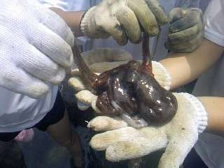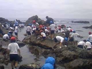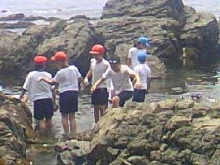 宮崎浜では,鳳徳小学校の皆さんとも一緒で,自然と仲良くなることができました。タコもつかまえました。