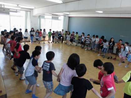 キャンプファイヤーでする予定の,フォークダンスを踊りました。