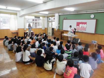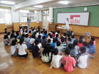 歯についての話を聞き,子ども達も,驚いたりしながら聞いていました。