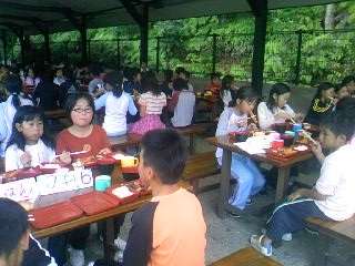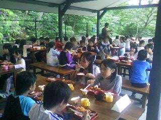 2日目の夕食は,野外炊事場横の屋根のあるテーブルで食べました。このあと入浴・キャンプファイヤーです。