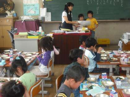 今日の給食のメニューは,麦ごはん・鶏肉のさっぱり煮・ほうれん草のおかか煮・みそ汁・牛乳です。今日も残さず,おいしく食べましょう。