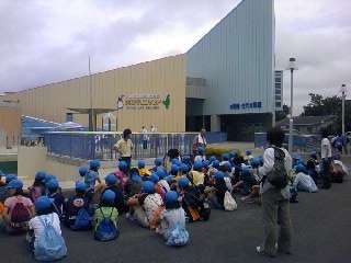 志摩マリンランドに到着しました。ペンギンに,一人ずつさわらせてもらったり,普段は入れないバックヤードに入れてもらい,餌やり体験をしたりしました。