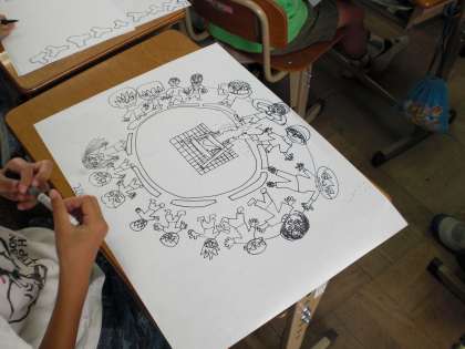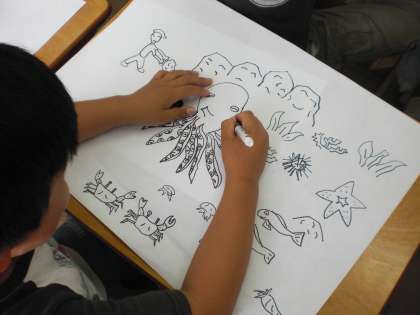 みさきの家での思い出を絵にあらわしてみました。キャンプファイヤーや磯観察,自由活動・・どれも忘れられない思い出です。