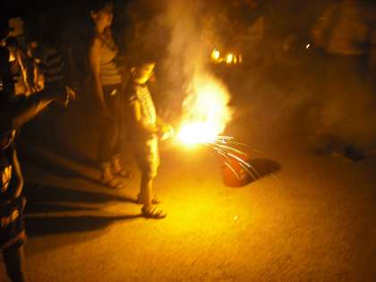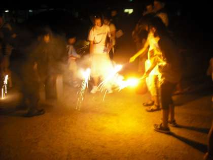 参加した幼児や小学生は花火をもらって,注意を受けた後,みんなで花火を楽しみました。