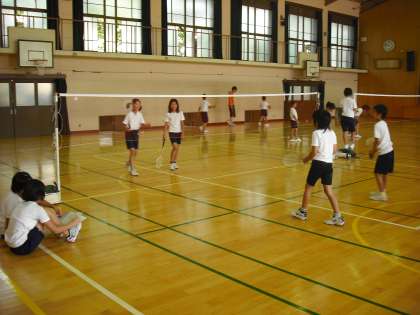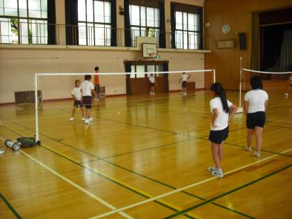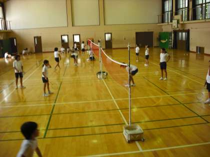 今日から,夏休みのバドミントンの練習が始まりました。7月30日にある「京都市バトミントン交歓会」にむけて頑張って練習しています。