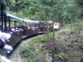 食事も終えて,かわいい汽車の森林鉄道に乗り,自然の中を走りました。気持ちのよい森林浴ができました。