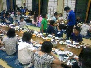 お茶をこぼさないでね。食事の後はこの地域のことをよく知っておられる古老の方から,お話を聞きます。その後,入浴(トロン温泉),今日一日の反省会,就寝・・・(枕投げ)?と続きます。こうしてねざめホテルの夜は更け行くのであります。本日のホームページはこれにて終了させていただきます。ちょっと疲れました。