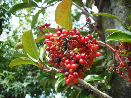 サンゴジュの実が熟してより一層真っ赤になっています。本当に名前の通り珊瑚に似ていますね。