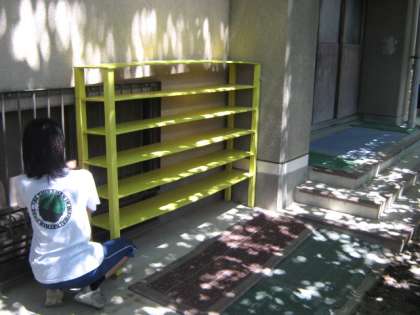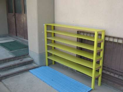 昨日からの職員作業で,体育館周りに下靴を置く棚が完成しました。これで全校児童が体育館に集まる時に,スムーズに入退場できることでしょう。
