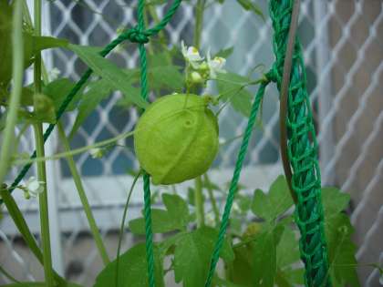 フウセンカズラとはムクロジ科の植物の一種です。花を鑑賞するためよりむしろ,風船状の果実を鑑賞するために栽培されています。種子はとても不思議な模様ができます。楽しみにしていてください。