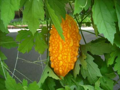 ゴーヤのカーテンがきれいに出来上がっています。ゴーヤもたくさんなっています。だんだんとゴーヤが熟してきました。