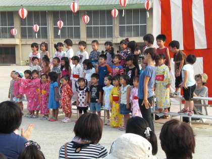太鼓演奏に引き続き,待鳳保育園の子どもたちのお歌の発表がありました。とてもかわいかったです。会場も賑わいを見せてきました。
