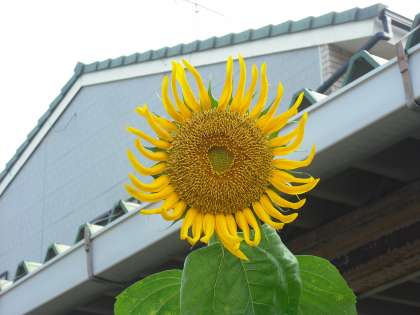 待鳳小学校の最後のヒマワリが咲きました。去年のヒマワリは,夏休み明けには種ばかりになっていたのですが,今年はヒマワリも子どもたちを迎えてくれます。
