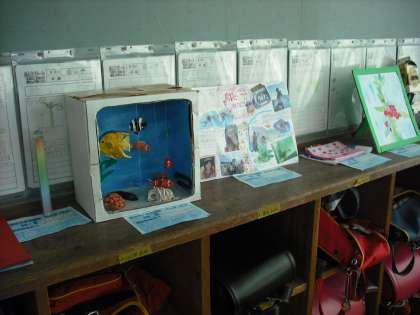 五山の送り火を調べたものや海の様子を表した工作など,夏休みにぴったりの作品や,それぞれが工夫して作ったり,調べたりした作品がいっぱいあります。