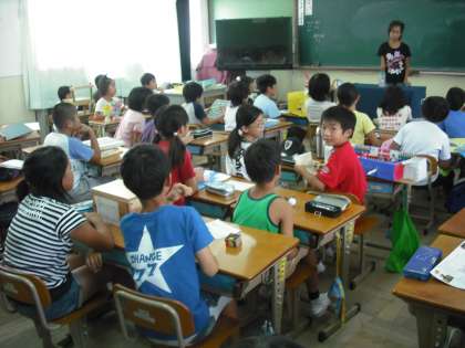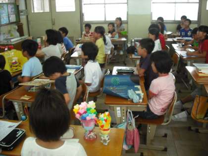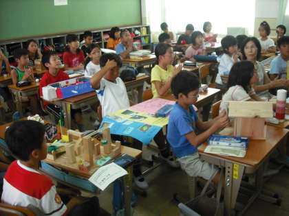 夏休みに行った自由課題の発表会をしています。みんな,いろいろな工夫をしたり,調べたりして作品を仕上げていました。どの作品も力作ぞろいです。