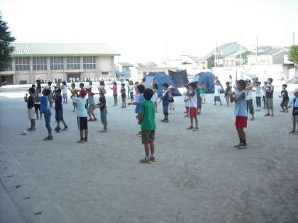 二日目,最初の活動はラジオ体操です。しっかり目を覚ませましょう。