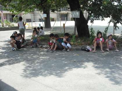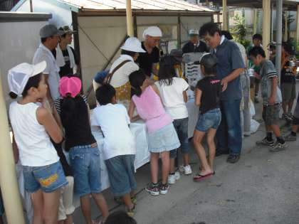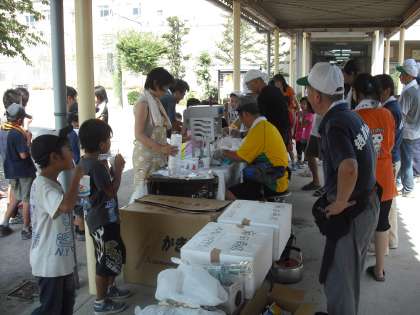 最後の活動はシャワーの後のかき氷です。汗をいっぱいかいて,シャワーの後のかき氷は最高です。