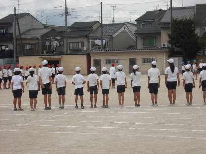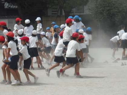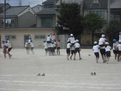 5年生は恒例の騎馬戦です。運動会当日までに,各色とも作戦を練って勝利につなげることでしょう。