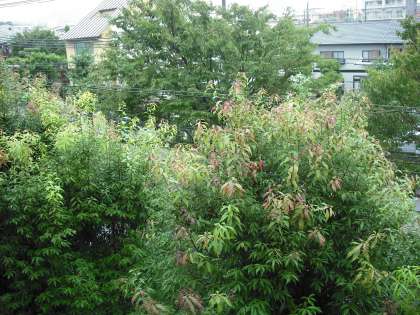 現在,台風9号は若狭湾付近にあり東へ進んでいます。子どもたちの登校前は激しい雨となりましたが,登校時は小雨になりました。この台風によってもたらされた雨は,本当に恵の雨となりました。植物にとって,酷暑の中の大きな一休みとなっています。