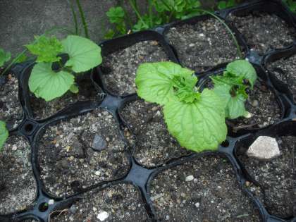 「ツルレイシ」が発芽しました。もう少し大きくなったら,花壇に植えます。