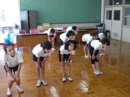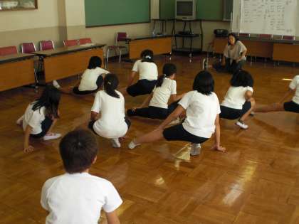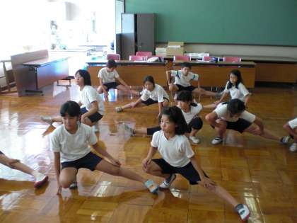 今日の6校時に運動会に向けての係活動がありました。準備運動係の子どもたちは,全校の生徒に運動を覚えてもらおうと,頑張って練習しています。