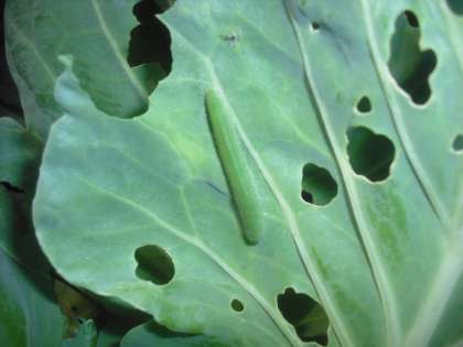 モンシロチョウの幼虫です。約5cmです。いつになったら,さなぎになるのかな?