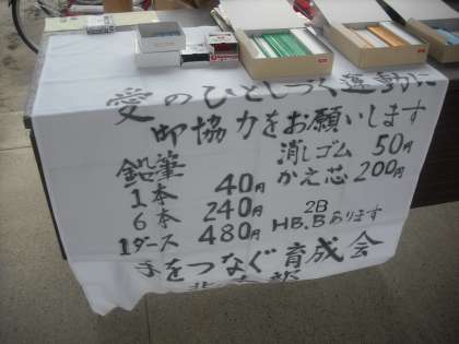 毎年,休日参観日に「愛のひとしずく運動」の鉛筆販売を行っています。