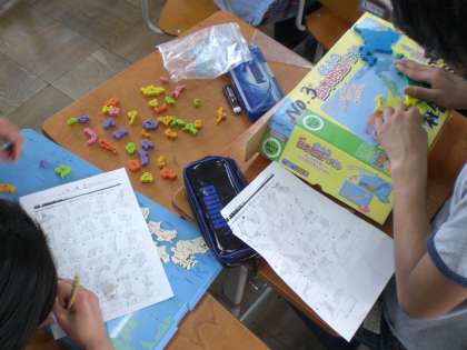 日本の地図パズルを使って,全国の都道府県の勉強をしています。
