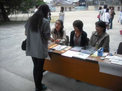 休日参観日を利用して,PTA本部委員さんが6月7日に行われる「北区民春まつり」のチケット販売とメール配信の申し込みの受付を行っています。